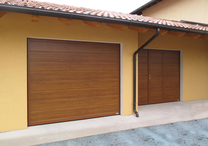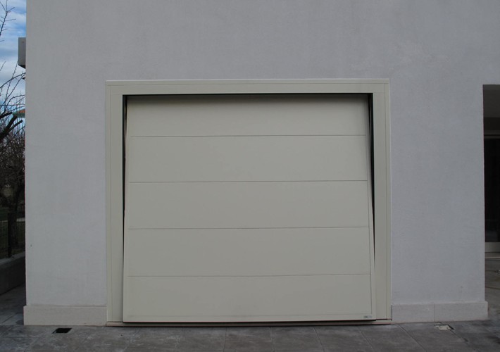 Porta basculante rivestita in pannelli monopanel sandwich dello spessore di 40/42 mm in acciaio.